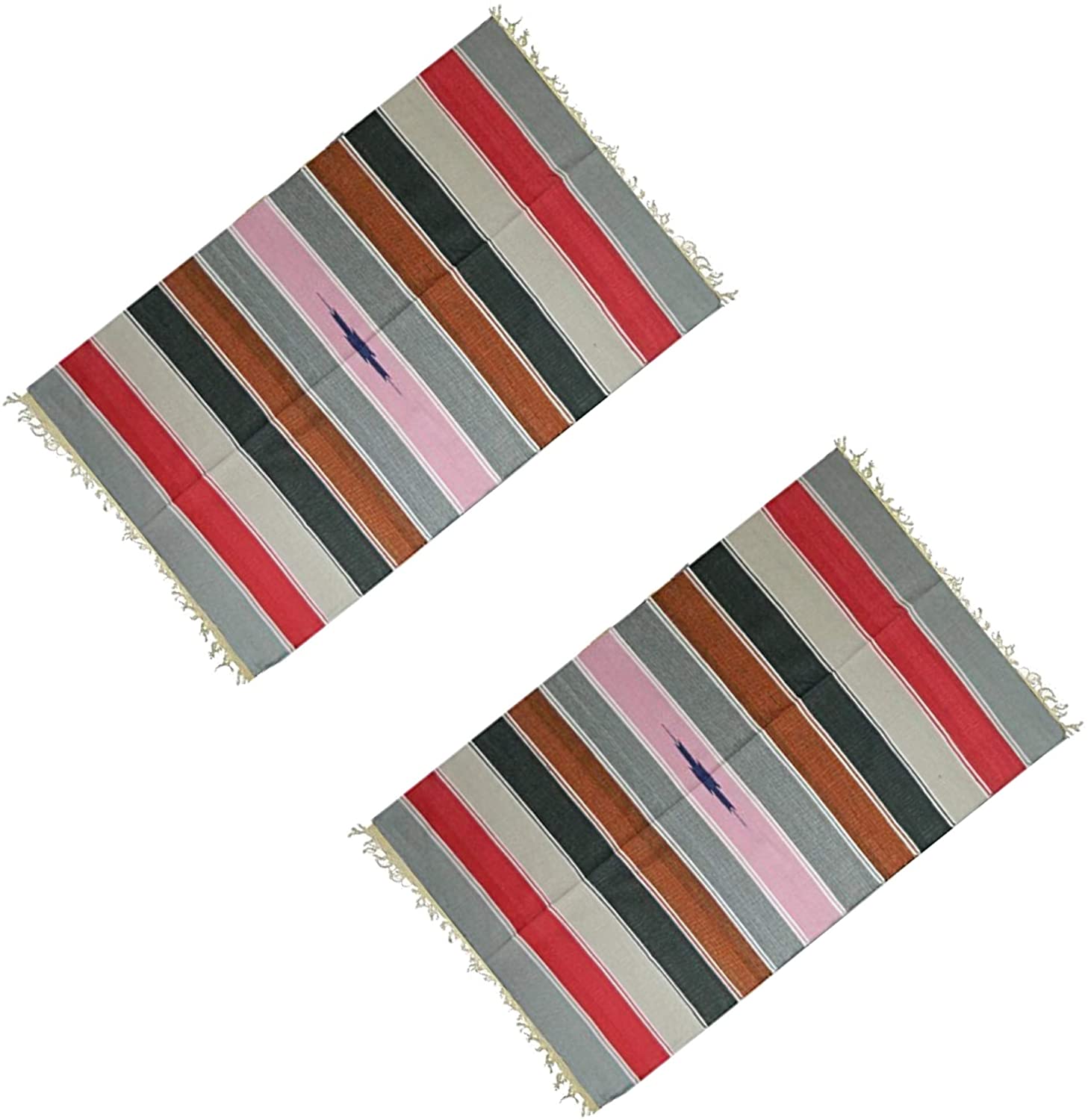 Zwei hochwertige, gestreifte Baumwoll-Teppiche