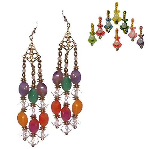ein Kärtchen mit Bindis (selbstklebender Stirnschmuck) und 1 Paar Bollywood Ohrhänger mit Perlen und Steinen aus Acrylglas. Farbe: beige und (kräftiges) orange