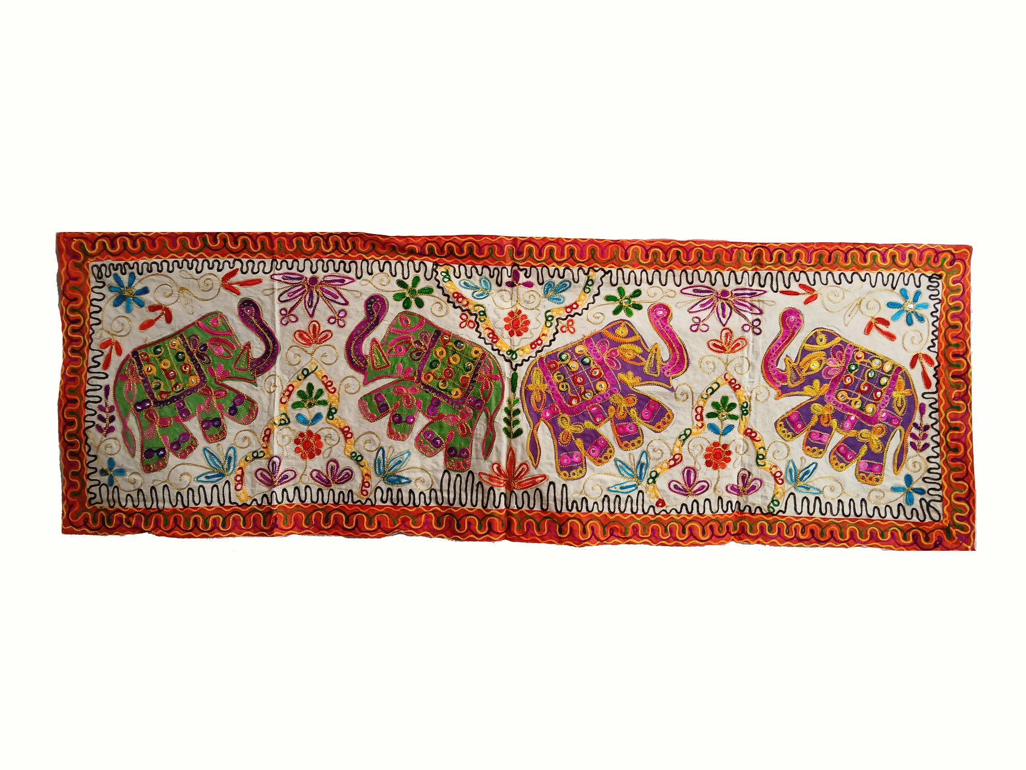 Tischdeko aus Baumwolle mit Elefanten-Design und bunten Stickereien